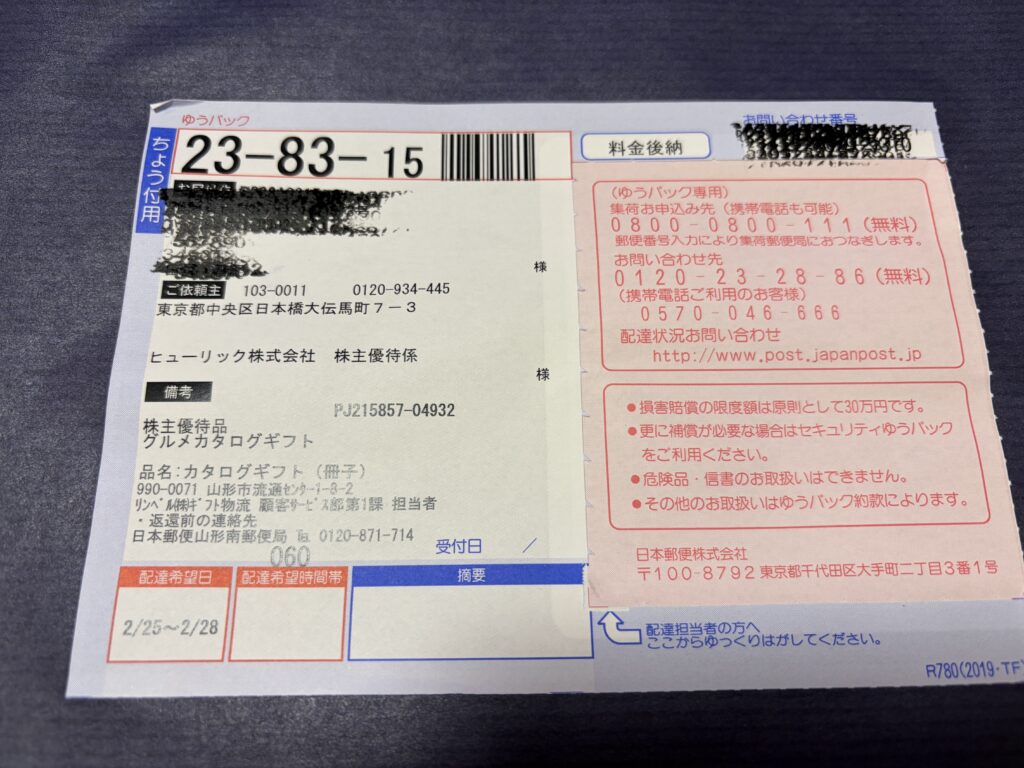 優待到着レビュー