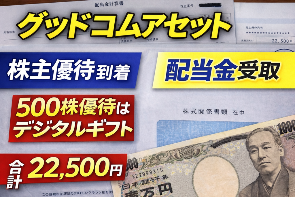 【配当金到着】グッドコムアセットから22,500円の配当金を受け取りました(500株保有)