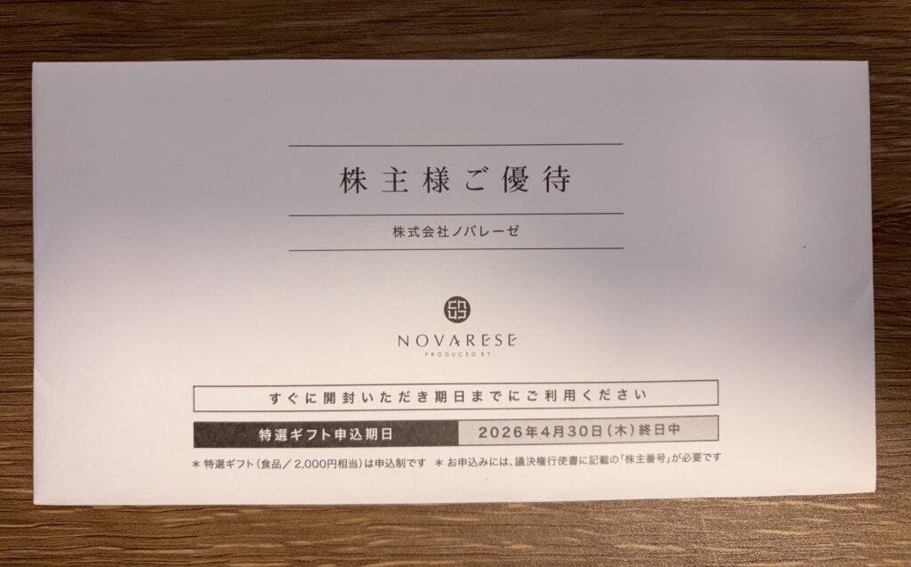 ノバレーゼから株主優待の案内が到着