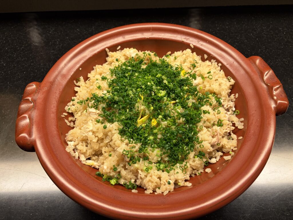 2時間をゆっくり食べるので後半はお腹一杯みたいで、最後の鯛飯はお持ち帰ることに。