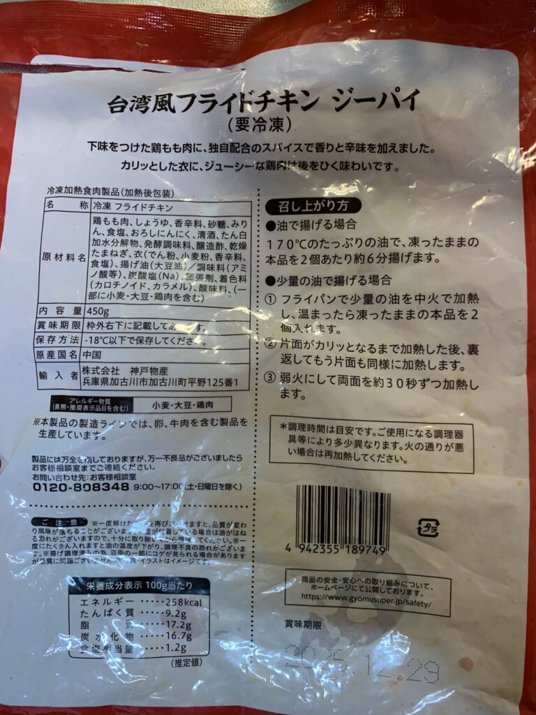 業務スーパーで気になっていた 台湾風フライドチキン(鶏排/ジーパイ) ¥507円をついに購入してみました。