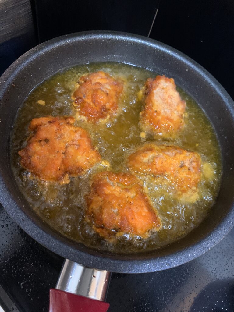 フライパンで少量の油でも揚げ焼きできました。