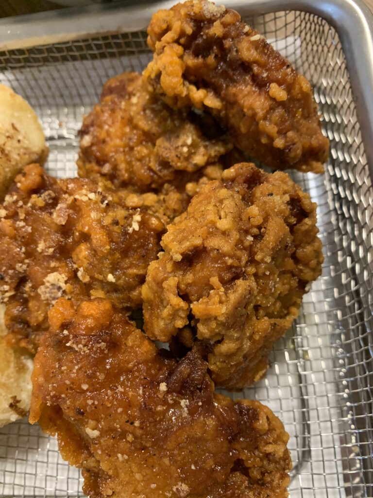 揚げ上がりはカリッと香ばしく、衣がしっかり厚めで食べごたえがあります。