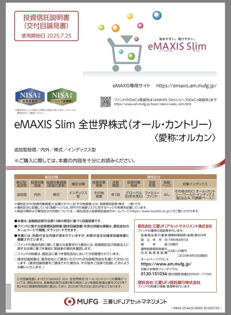 私はeMAXIS Slim 全世界株式(オール・カントリー)とeMAXIS Slim 米国株式(S&P500)を積立ています。