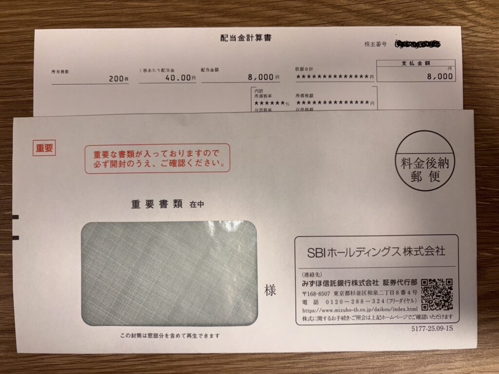 SBIホールディングスの中間配当金は、投資の成果を実感できるうれしい収入でした。