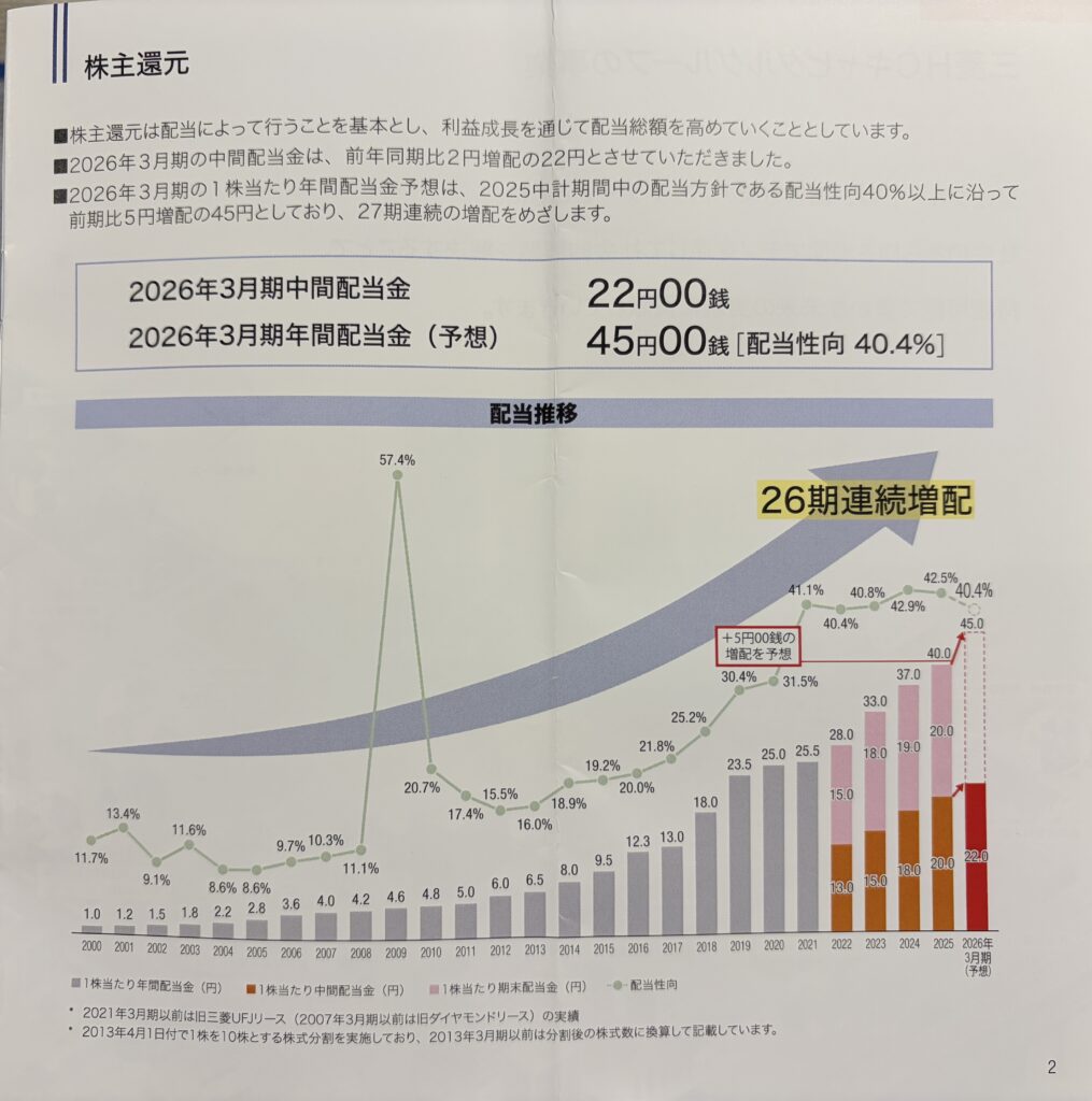 • 2026年3月期の年間配当金予想は45円