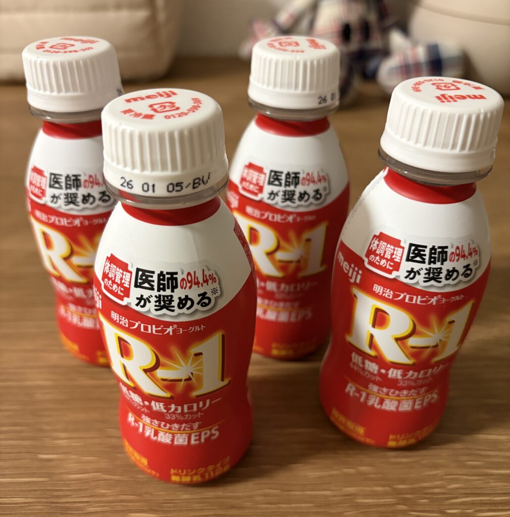 今回はR-1ドリンクを選択。レジでカードを出すだけで、スムーズに交換できました。