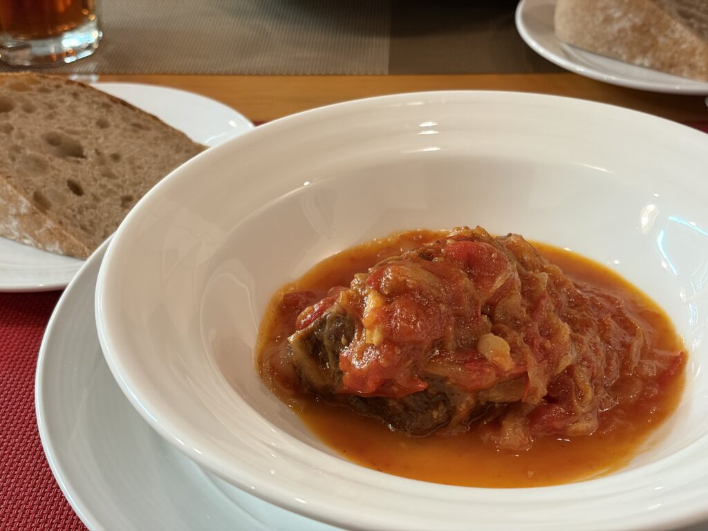 フォークを入れるとほろりと崩れるほど柔らかく、トマトのやさしい酸味と肉の旨みが溶け合った、どこか家庭的で温かみのある味わいです。重すぎず、最後まで心地よく楽しめるメインでした。