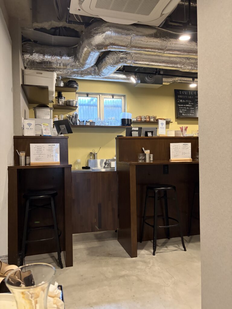 カウンター席4席?と2人掛けテーブル2つとわりと狭め。