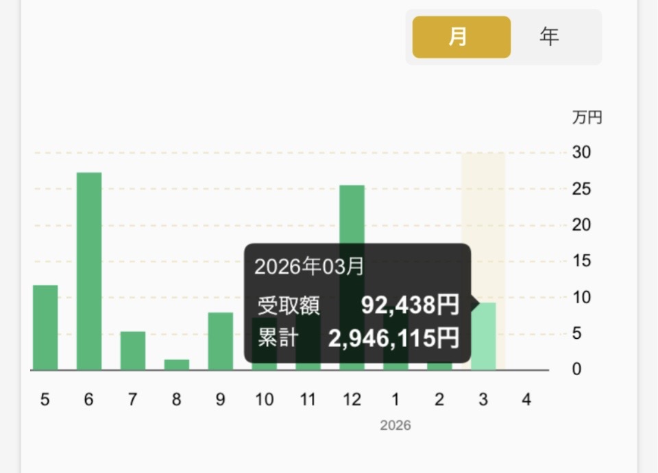 2026年3月の受取配当金は合計¥92,438円でした。